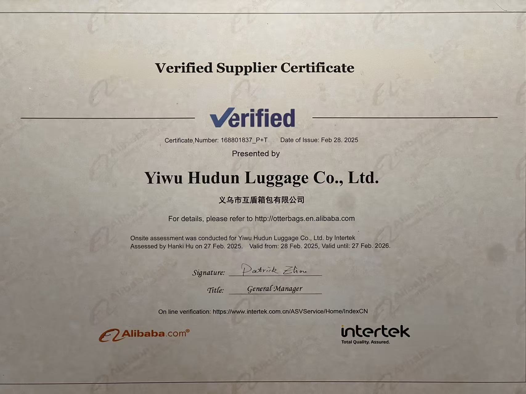 Yiwu Hudun Luggage Co., Ltd.